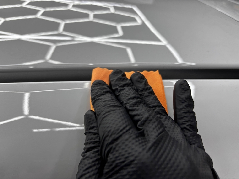 写真だと伝わりづらいですが、磨いた後だと照明の光源がくっきりシャープに見えます。