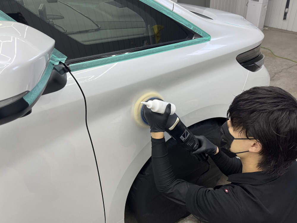 当店では作業の前に必ず塗膜の厚さを測定するので塗装をキズつけることなく磨くことが出来ます。