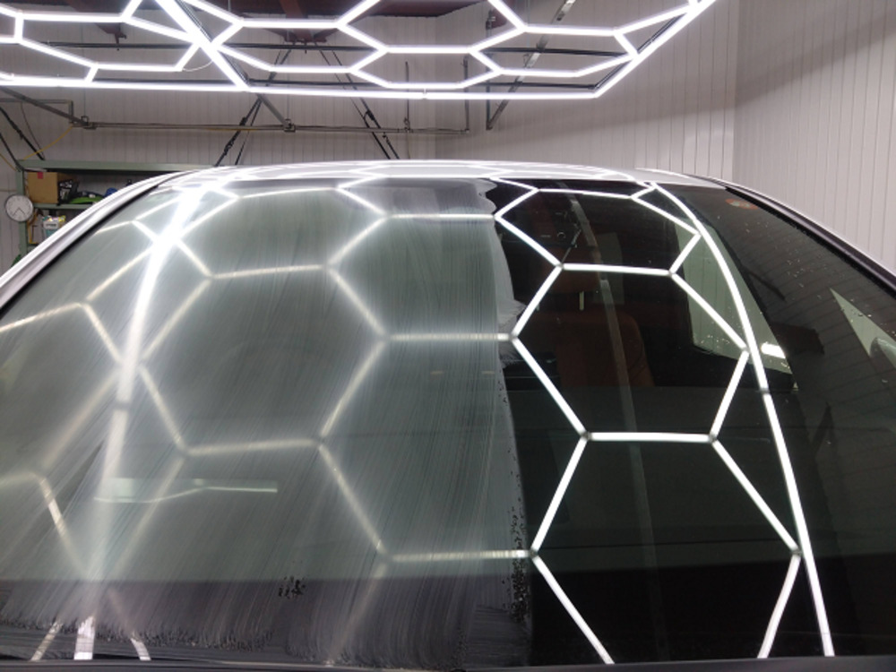 キズにより光の輪郭がぼやけていましたが、キズを取り除いたことでクッキリと映り込むようになりました!