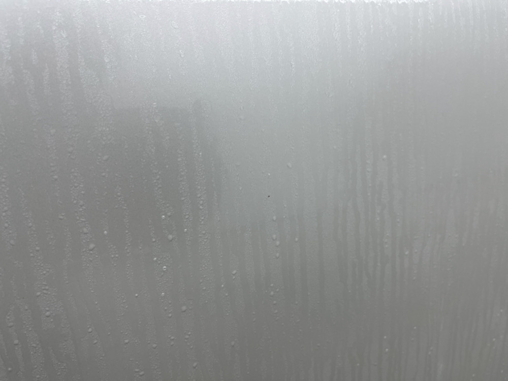 ガラスに水をかけたときに左側のように水がベタっと張り付くようになります。