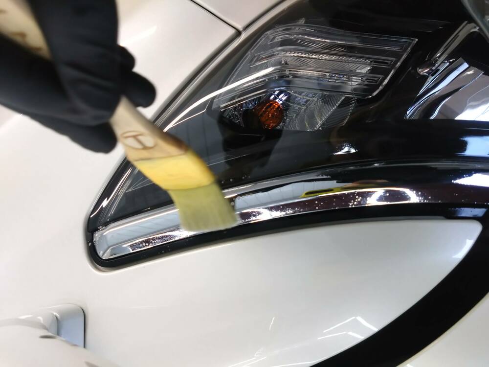 磨きが終わりましたら洗車と脱脂をしてコーティング剤を塗布していきます。