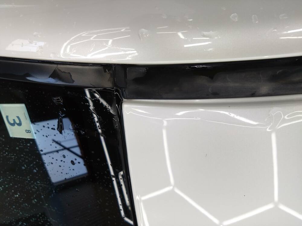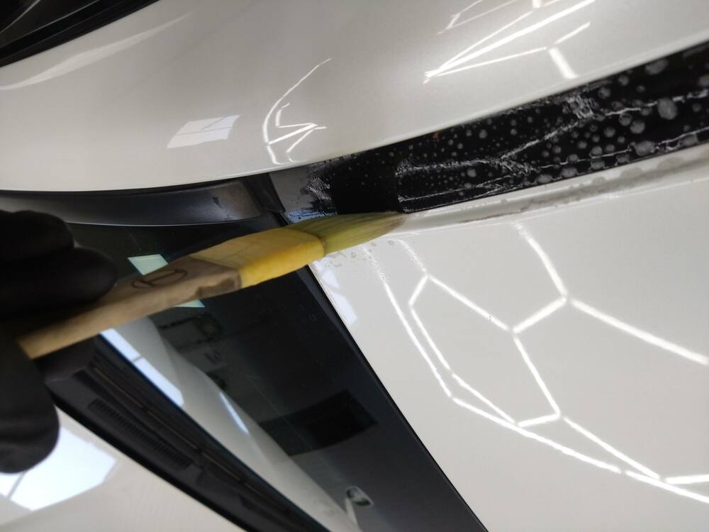 未塗装樹脂部分にも専用のコーティング剤を塗布、全ての窓ガラスには撥水性のある