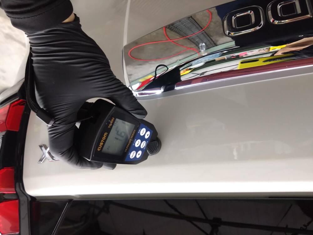 塗膜の厚さを計測し、塗装に問題がないか確認をしてから磨きます。