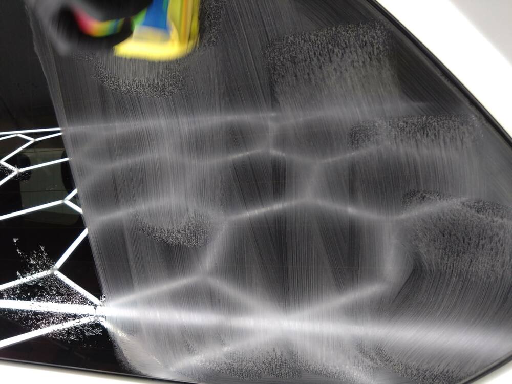 ボディのとは違いガラスには強いケミカルや洗剤は変色などのリスクがありますので慎重に作業しました。