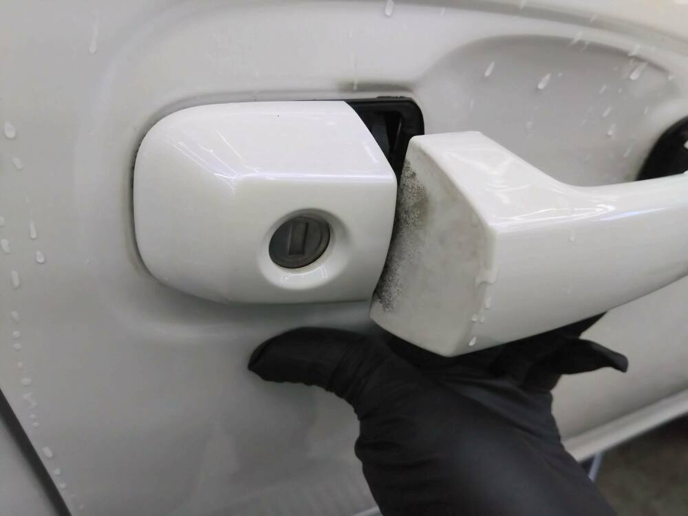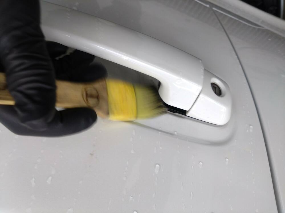 お車の状態としては、オーナー様は普段からしっかり用具を揃え洗車をしていただいることが見て取れましたが、細かく確認すると、中古でご購入されたとのことで恐らく前オーナーさんが所有されていた際に付着したであろう通常の洗車をでは落とせない汚れが各部蓄積していました。