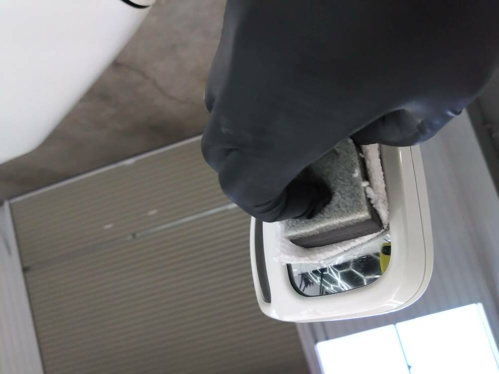 原因は主に水垢汚れですがWAXが酸化してカチカチに変質して隙間に詰まっているケースもあります。