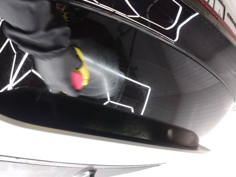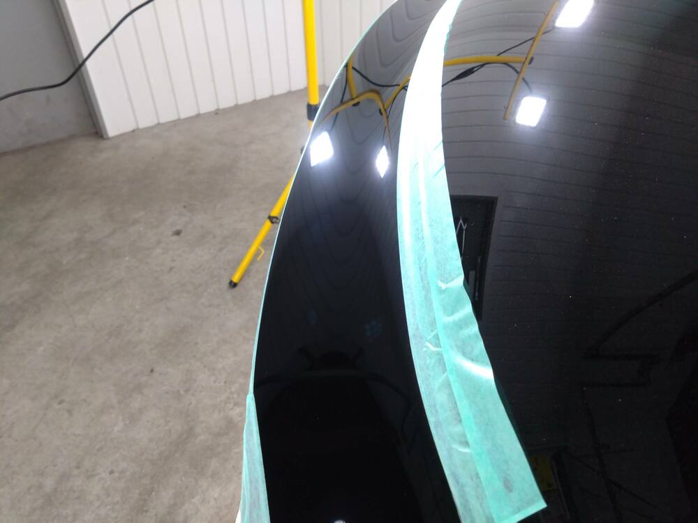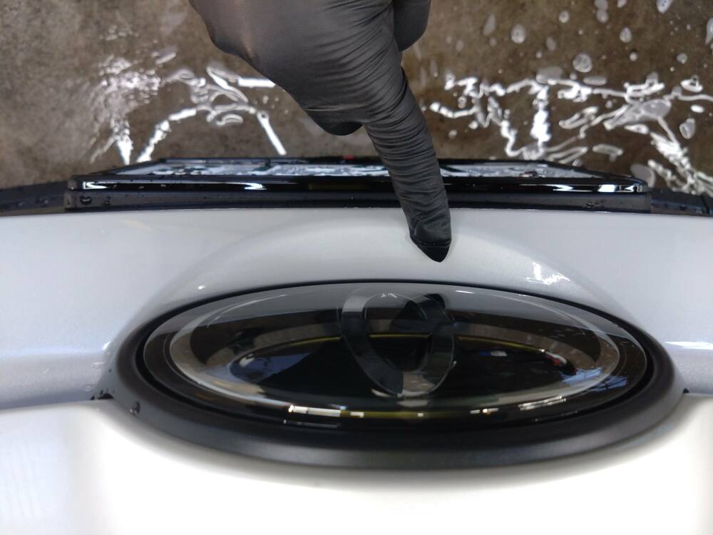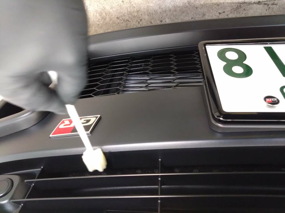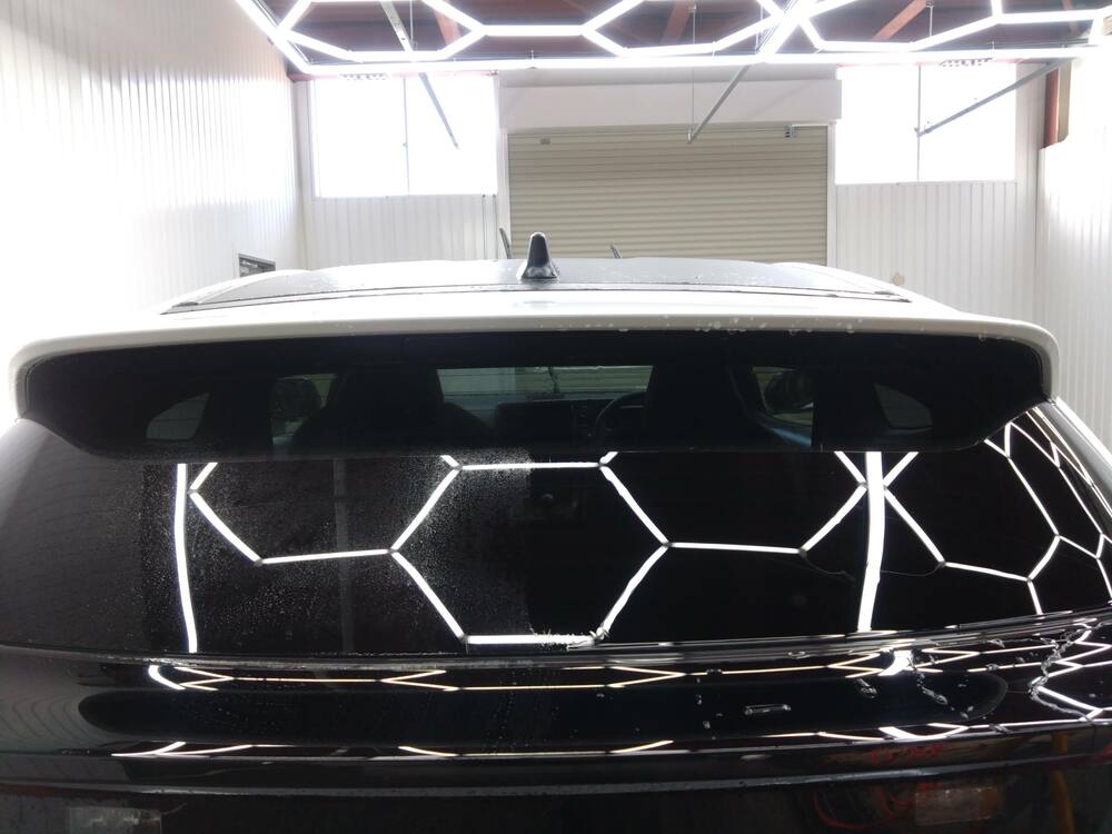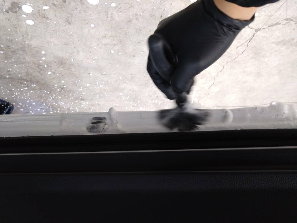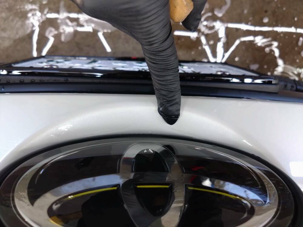 こちらもアルミホイール同様、後に脱脂をしてから撥水性のコート剤を塗布しますが、この下地処理があるのとないとでは撥水の強さや持続性に差がでます。