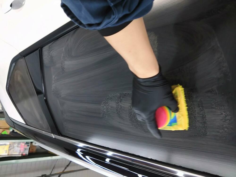 下処理が終わりましたら洗車と脱脂をしてからコーティングをしていきます。