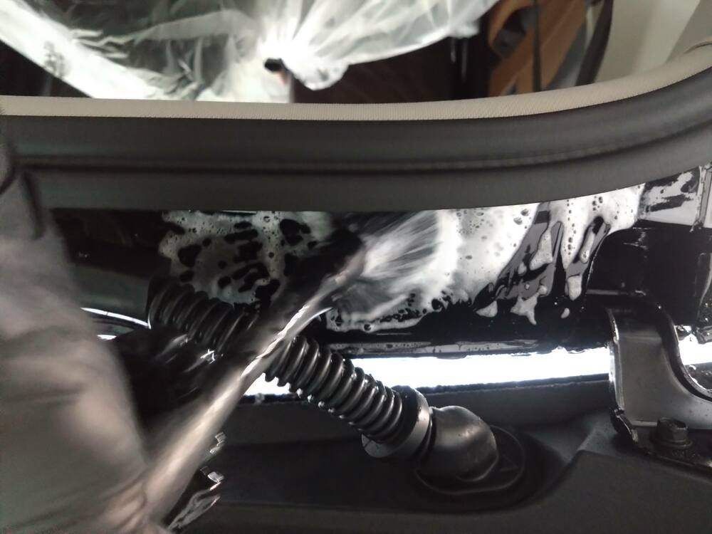 傷が入らないようにフォームガンを使用して洗浄していきます。
