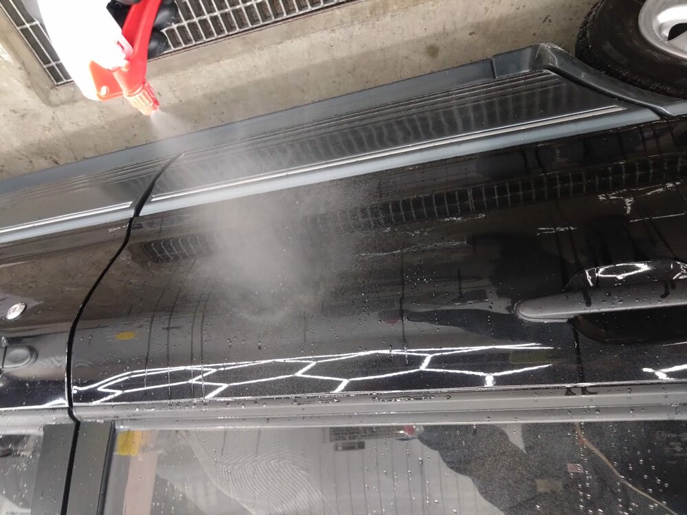 塗装表面に多少のざらつきがありましたので、中性タイプの鉄粉除去剤を噴霧し、クレイパッドを使用して丁寧に除去。