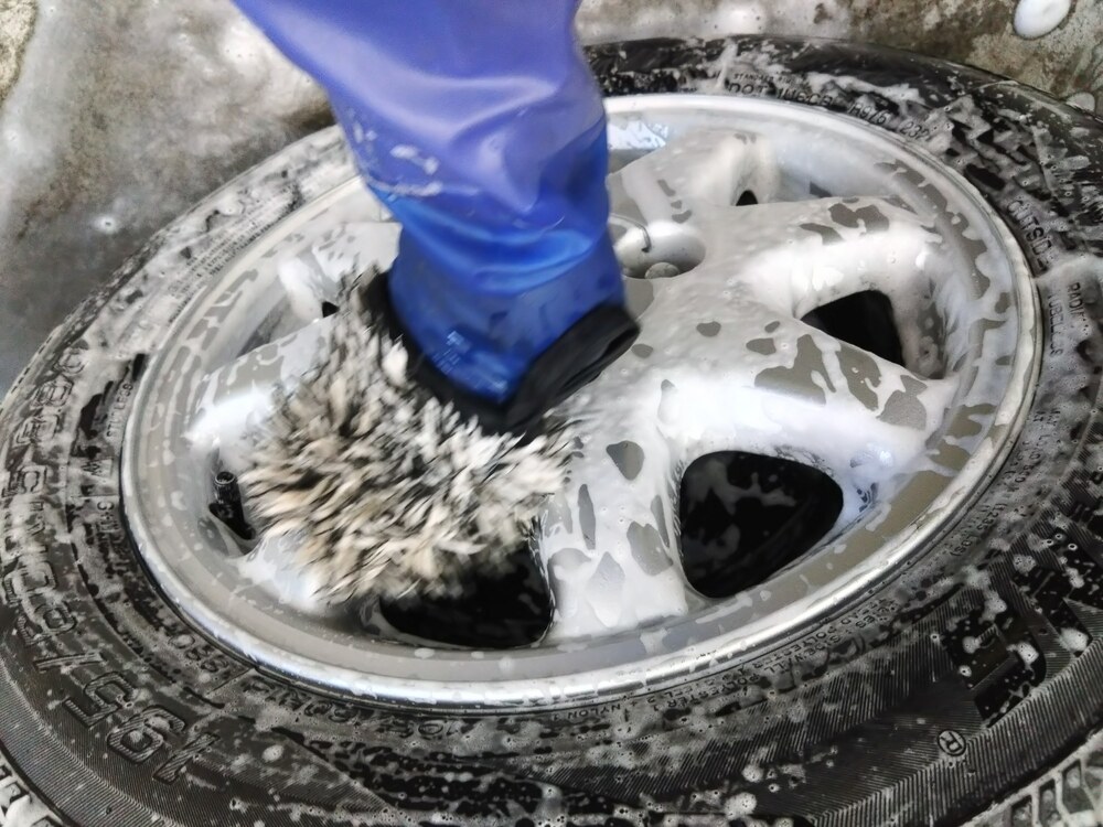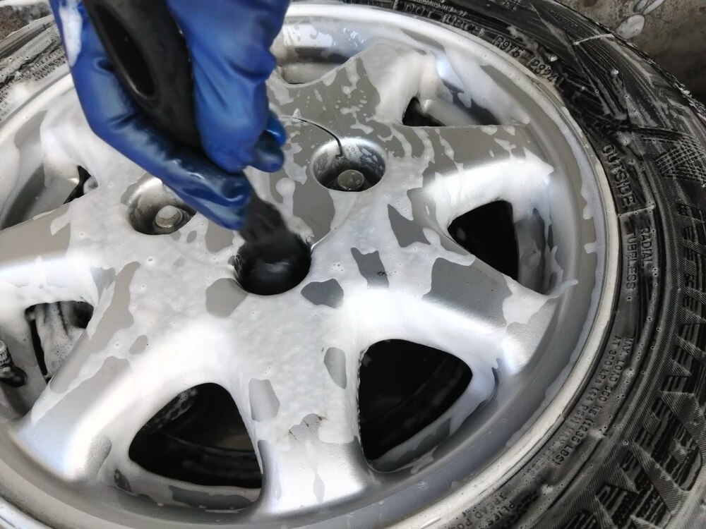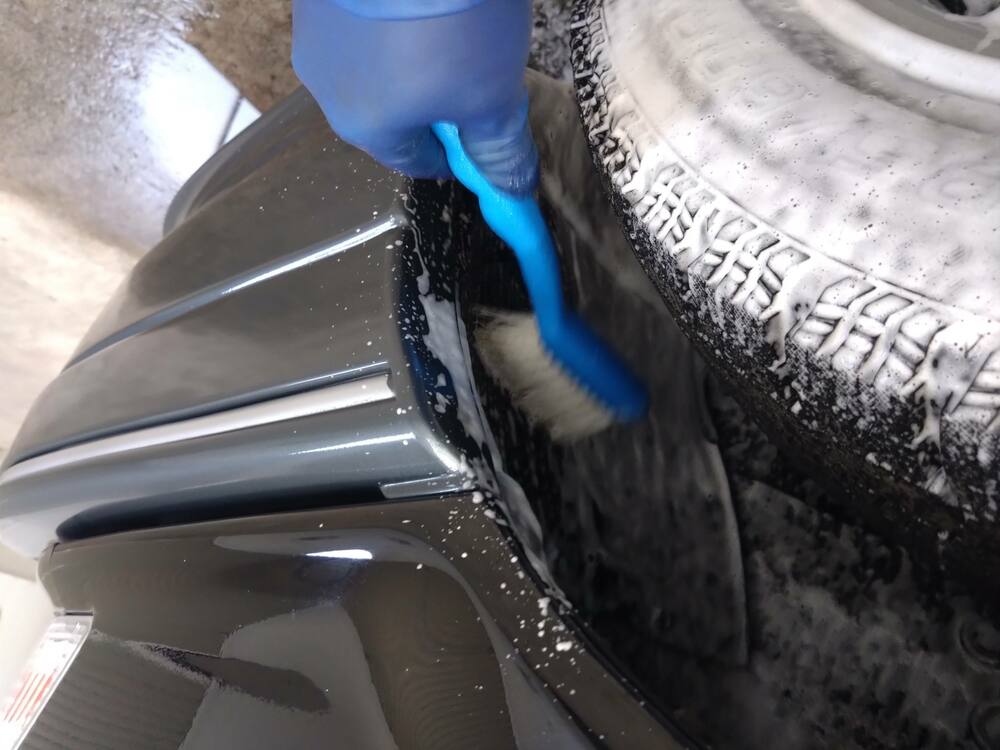 今回はタイヤ周りに限らず、なるべくお車の素材に負担がないような洗剤やケミカルを選び、どうしても落とせない汚れには成分が弱いアルカリ性や酸性の洗剤やケミカルを使用しました。