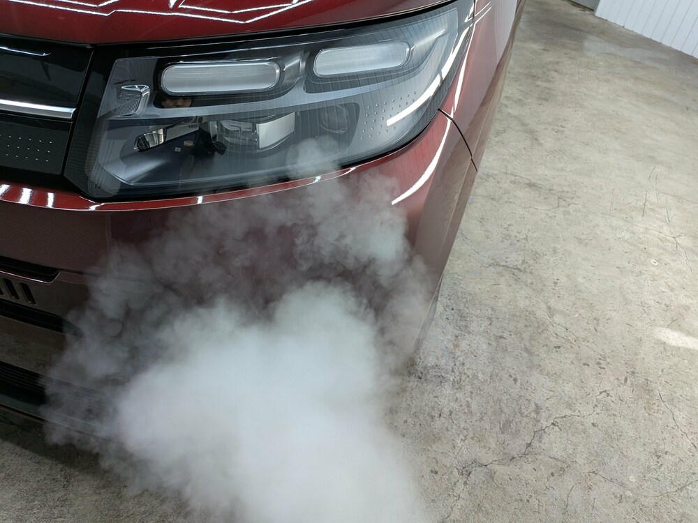 「G-POWER」は水分と反応してガラス被膜を形成するため、スチームを使用して定着を促しています。