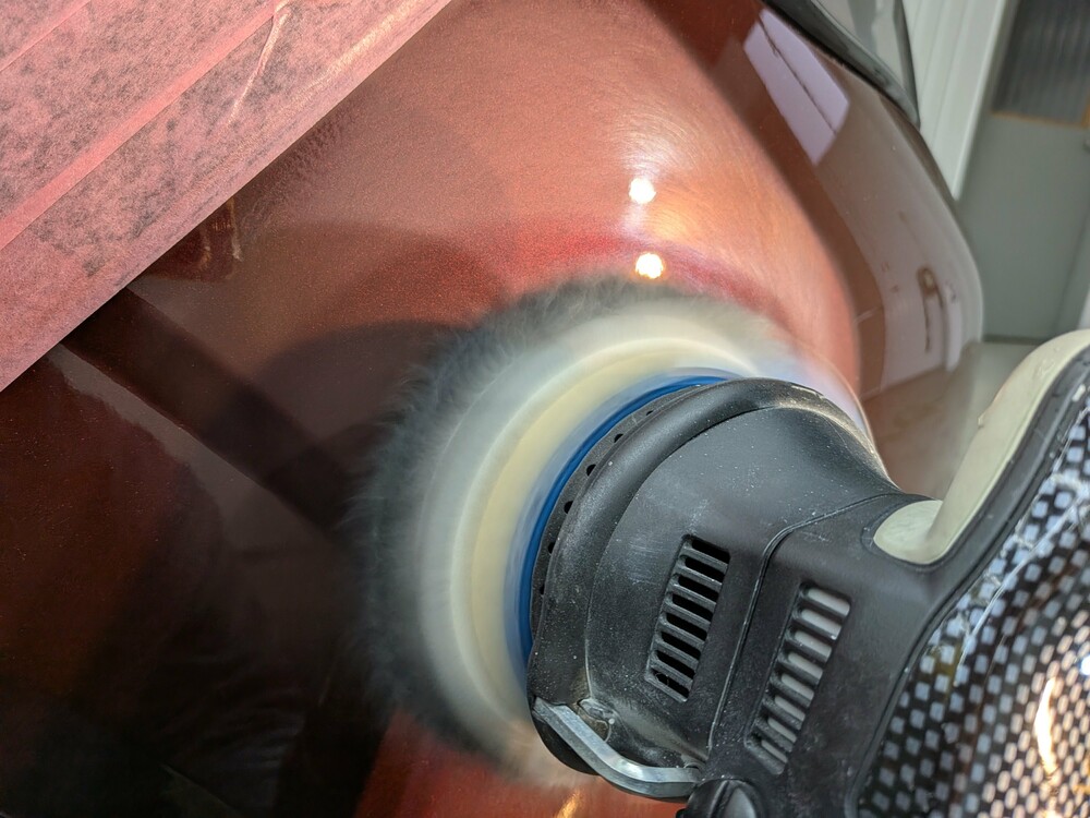 塗膜に負担をかけないように,最適なバフとコンパウンドを選定して磨き処理を行いました。
