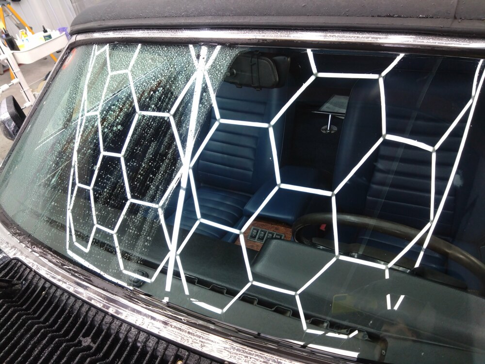 窓ガラスの撥水性も弱まっていたため、古いコート剤を併せて除去し、後ほど新たに撥水性の高いコート剤を塗布いたします。