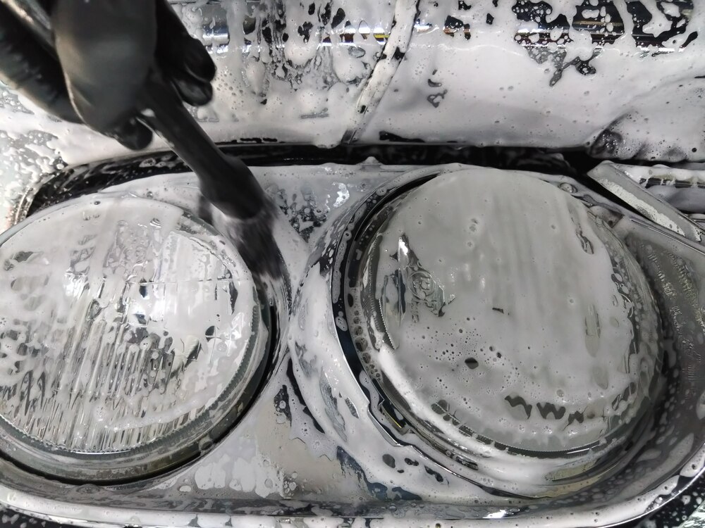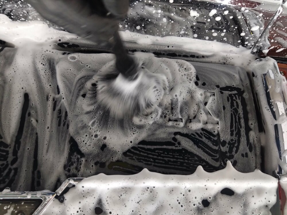 ボディもアルミホイール同様、傷が入らないようにフォームガンを使用してミットで丁寧に手洗いをしていきます。