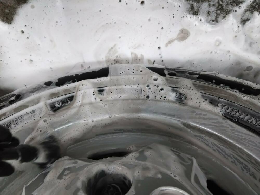 アルミホイールにダメージを与えないように洗剤の選定も慎重に行いました。