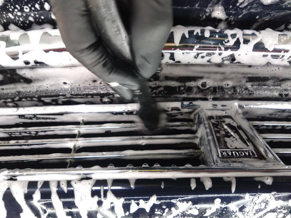 手が入りにくい箇所はディテーリングブラシを使用して、汚れをかき出します。