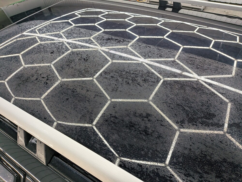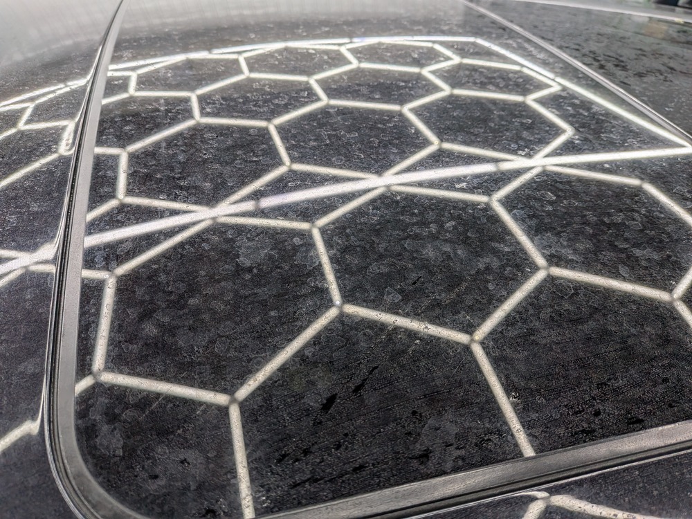 ルーフガラスのウロコが特に固着していたため、時間をかけて地道に除去しました。