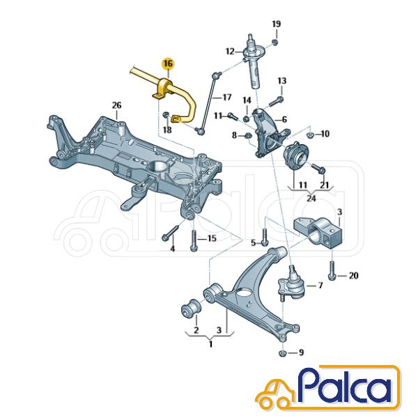 アウディ/VW フロント スタビライザーブッシュ 21mm| A3/8P | Q3/8U | ゴルフ5 | ゴルフ6 | ゴルフプラス | ジェッタ3 | シロッコ/13 | イオス | パサート/3C | トゥーラン/1T | ティグアン/5N | METALCAUCHO製